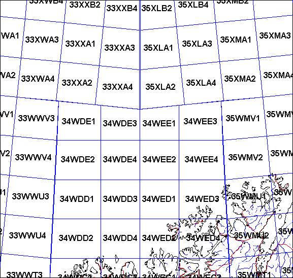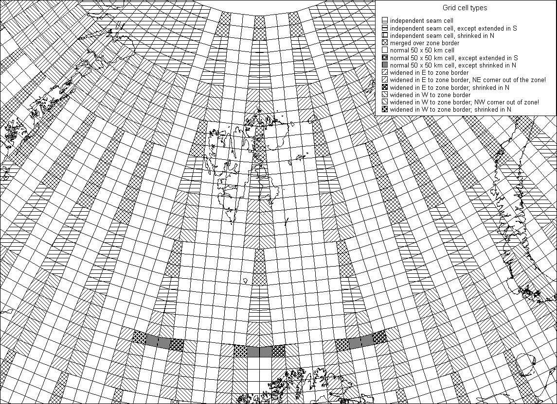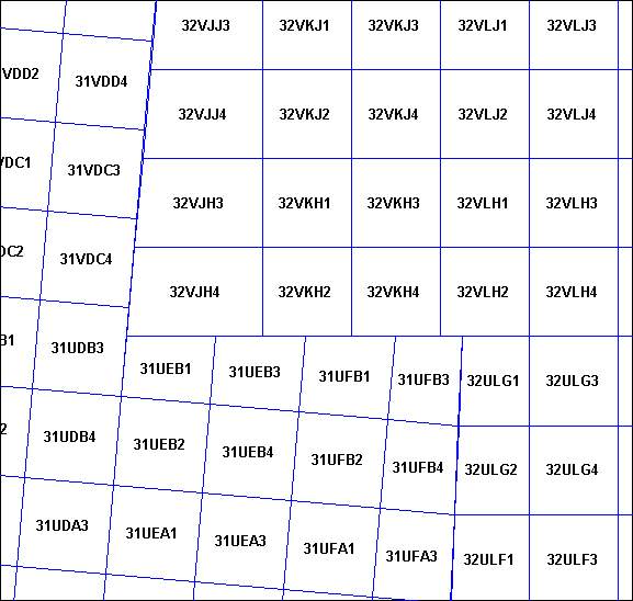 and in band X the grid cell boundaries are based on MGRS. Unlike
