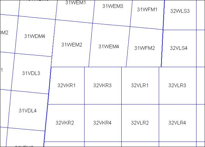 The grid cell names (eg., 35VLH3) of the