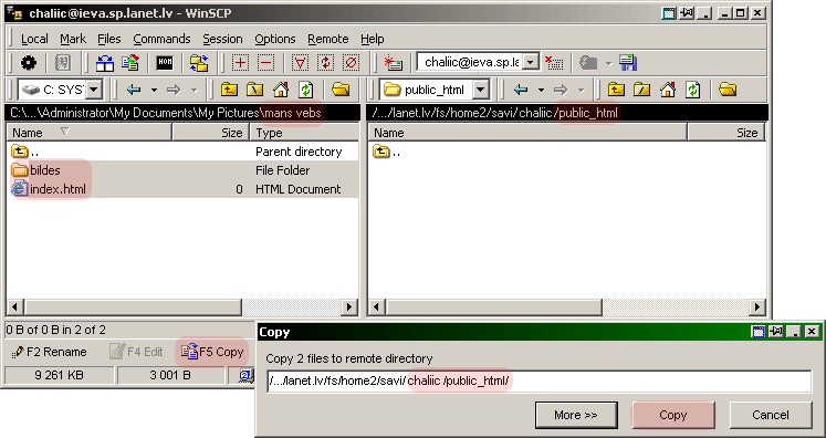 Lūk, piemērs, kur redzams, kā index.shtml fails
